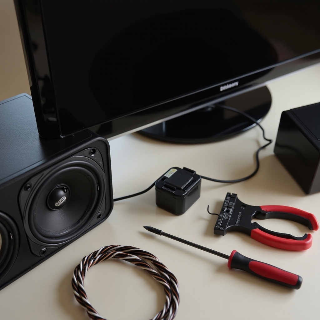 Ezeknek az anyagoknak a rendelkezésre állása segít megelőzni az esetleges megszakításokat a beállítási folyamat során. Ellenőrizze kétszer, hogy a hangszóróvezeték elég hosszú-e ahhoz, hogy elérjen a TV-től oda, ahol a hangszórókat elhelyezi.