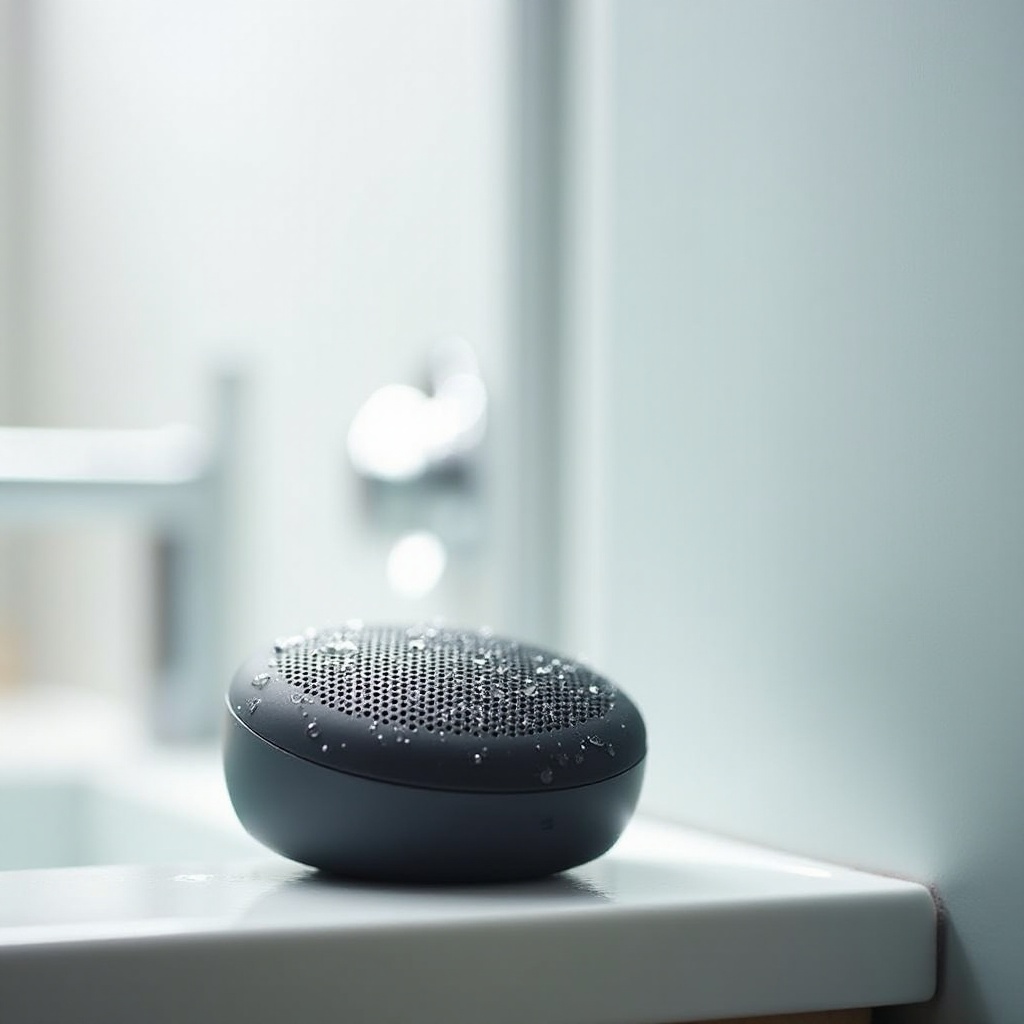 - Elhelyezés: Helyezd a hangszórót fülmagasságba, ideálisan a közvetlen vízpermet elől távol.